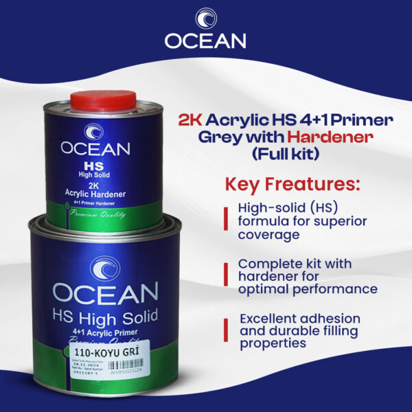 Be the first to review “OCEAN 1L 2K Acrylic HS 4+1 Primer Grey with Hardener (Full kit)”